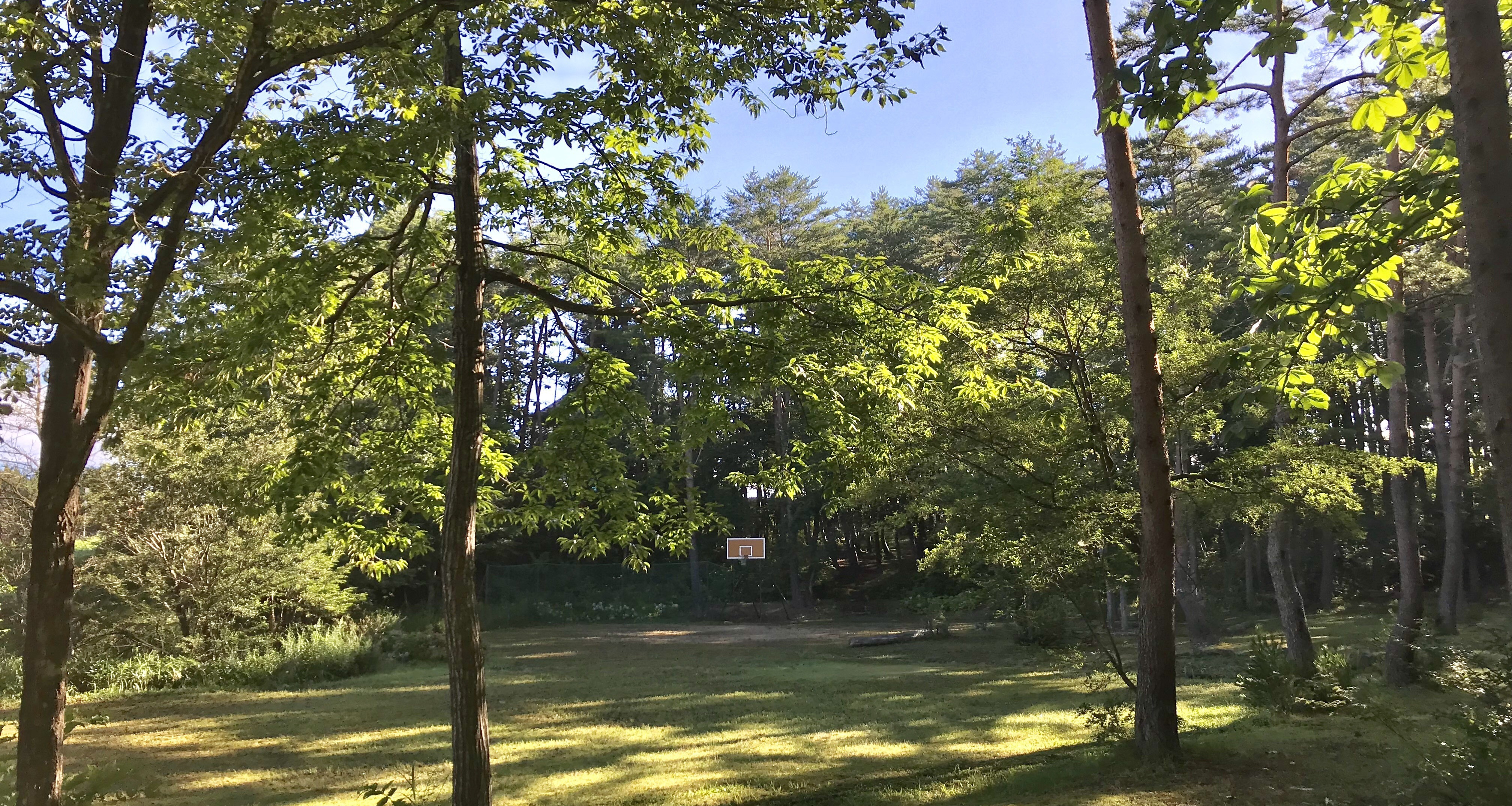 ここでは、バドミントン、バスケットボール、フリスビーなどで遊ぶことができるワン!