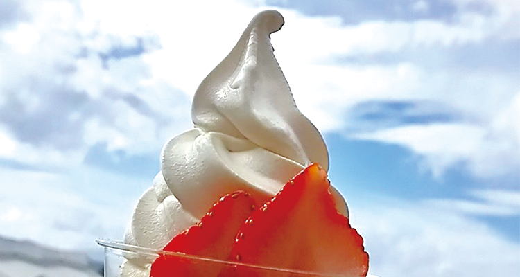 大人気のミルクたっぷり濃厚ソフトクリーム!夏季はひるがの高原イチゴもトッピングできて大満足!